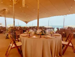 Como podréis comprobar en las fotos, la ceremonia la ubicamos en un sito distinto, entre el lounge y la Haima, ellos tenían de fondo la playa, para que los invitados la pudiesen disfrutar.