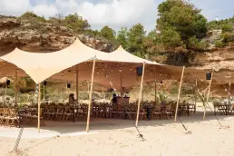 A Arnau y Merel los conocimos porque son de pueblo de al lado, sabían que querían casarse en la playa y junto con todo el equipo de profesionales, realizamos esta boda de colores alegres y flores silvestres.