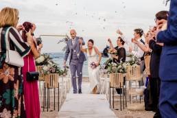 Xavi y Laia se dieron el “Sí, quiero” a pie de playa con sus familiares y amigos. Fue una ceremonia muy emotiva, sus amigos dieron grandes discursos donde cayó alguna lagrima, pero la parte más bonita fue en el momento que los novios liberaros unos globos donde estaban escritos los nombres de aquellos seres queridos que ya no están con ellos y no podían acompañarlos en su gran día.